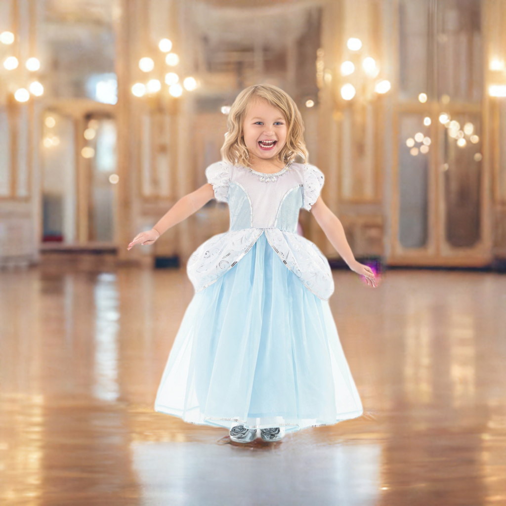 This dazzling deluxe dress is sure to make your little one feel like a princess on her way to the ball!