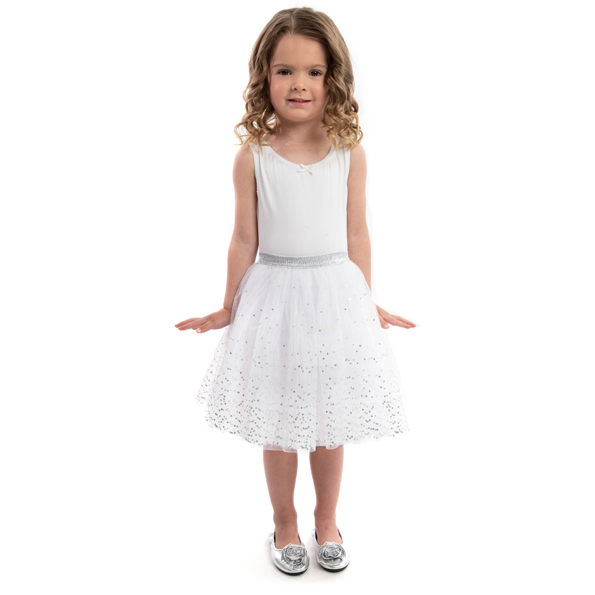 It's irresistible to twirl, jump, and dance in this fun, soft shimmery silver tutu!