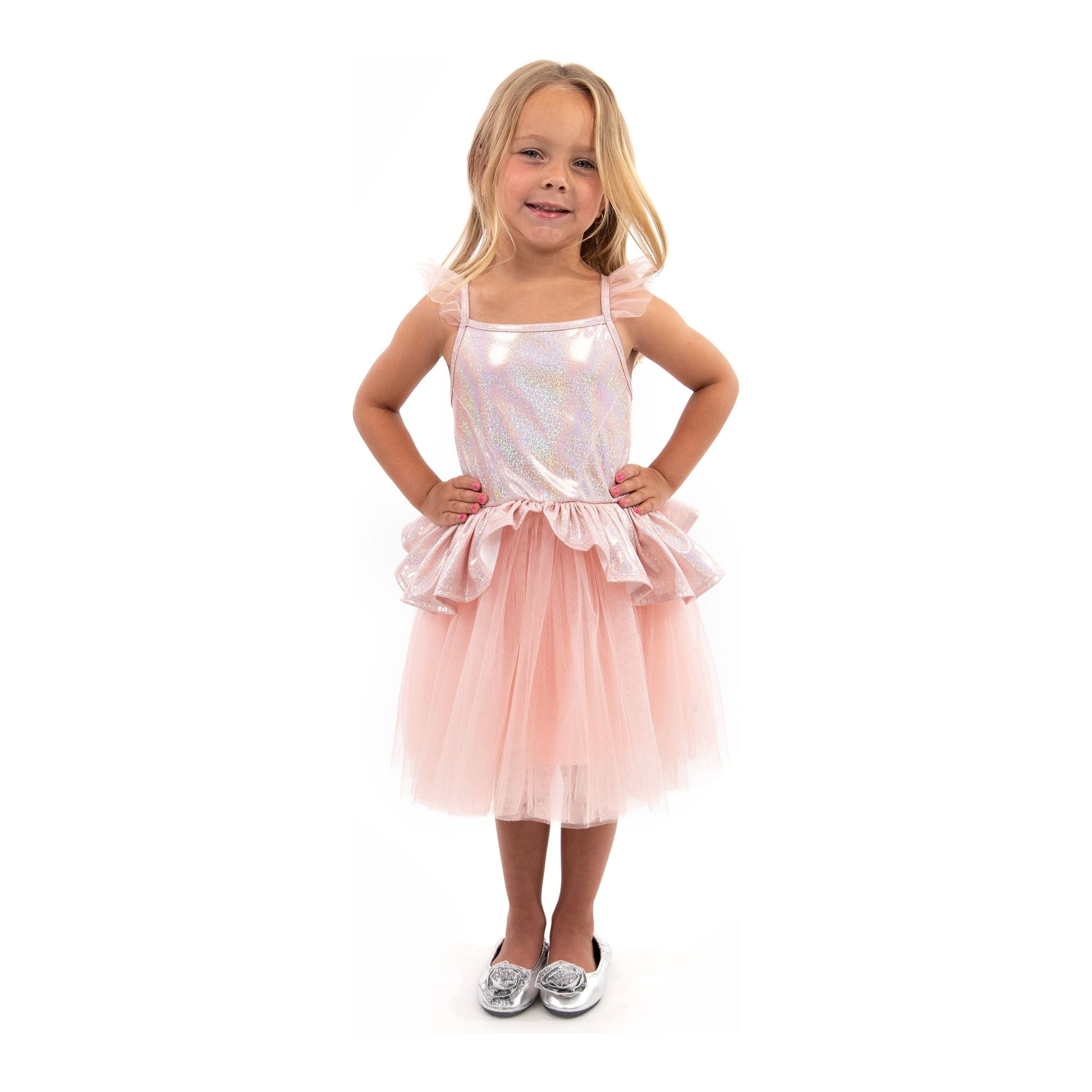 The sheer fabric and glimmering bodice together make this dress a delightful combination of softness and magic, turning any child into a little princess ready for a special occasion.