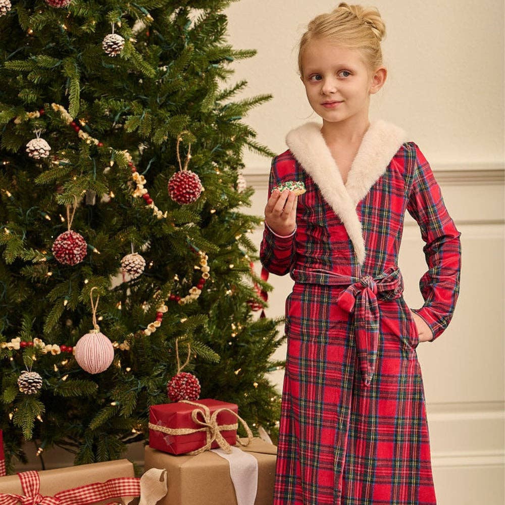 Sugar Bee Clothing brings you the Mini Eleanor Fur Trimmed Robe in Tartan. This robe is more than just apparel; it's a treasured memory in the making. Every stitch is designed with love and every detail is added with your child's comfort in mind. The fur trim adds a touch of luxury while the tartan pattern gives it a unique appeal. Capture memorable moments in this adorable robe, perfect for cozy evenings or morning play. Dress your child in Sugar Bee Clothing and make every moment photo-worthy.
